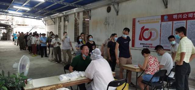 明兴公司组织全体在岗员工分批次集中进行核酸检测,优先检测居住荔湾区的员工,为荔湾区防控工作尽一份力!短短24小时内,共完成了近500人的核酸检测工作。