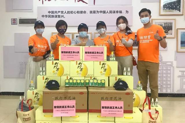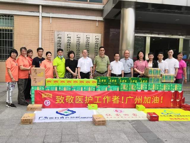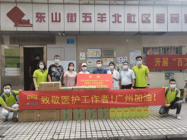 5月28日,敬修堂党委办一行代表为荔湾区岭南街街道办事处、南海岐城社区核酸检测现场送去包括了敬修堂跌打万花油、麝香跌打风湿膏,免洗抑菌洗手液等慰问物资。