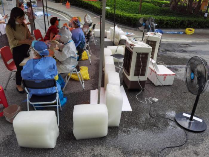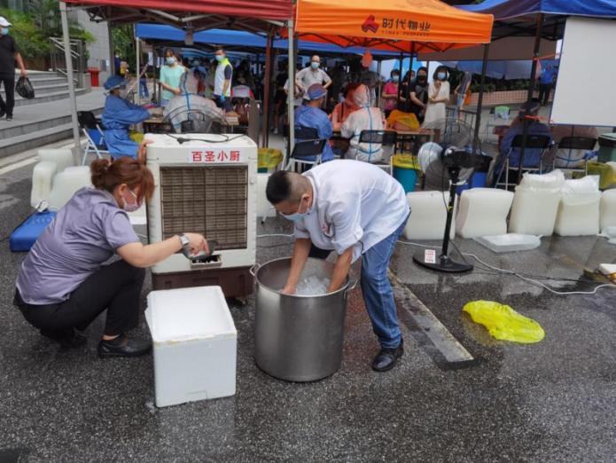 热心市民送上“冰块阵”,爱心企业自制“冷气机”