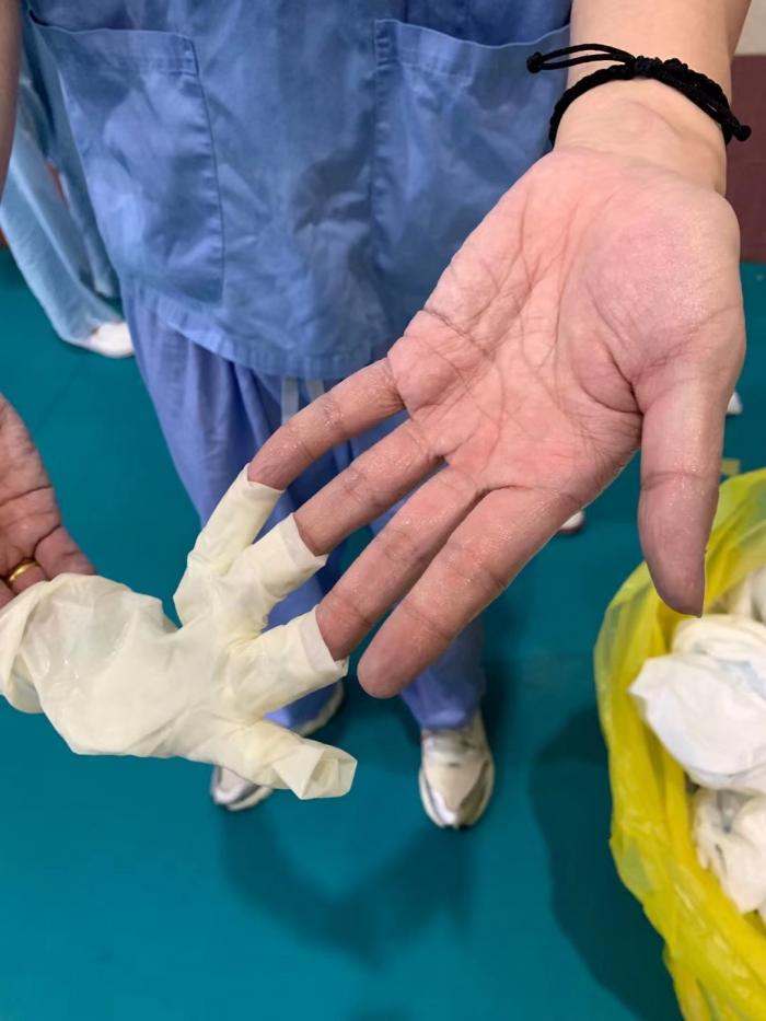 刚结束完采集工作,衣服湿透了。摘下手套,手在滴水。这时,老师又带来一名学生,“不好意思,我们以为学生都采集完了,还有一个。”窦明鑫二话没说,立马再穿上防护服,为学生进行采集。结束工作,细心的他把垃圾和医疗废物一并收拾好,才停下来。“这算什么,我热爱我的工作!”窦明鑫表示。