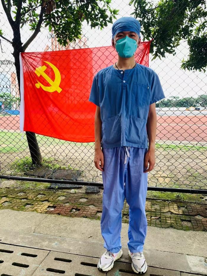 广东省中医院芳村医院呼吸胸外科护师窦明鑫,也是2020年国家援鄂第二批中医医疗队队员。近期肩胛骨骨折,还在休病假的他多次向医院请战,今天已经第二次参加支援核酸采集队。