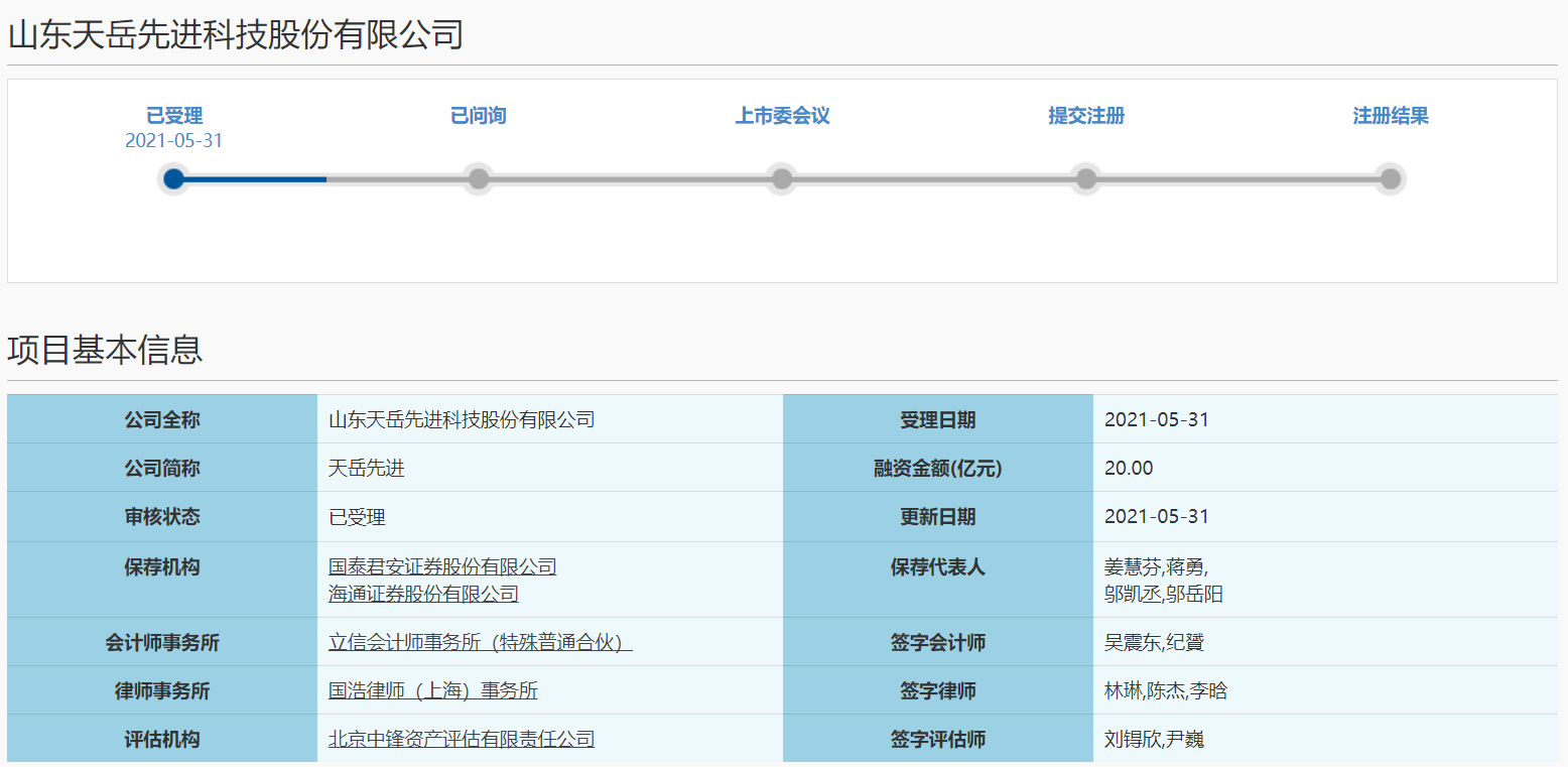 6月1日,资本邦了解到,山东天岳先进科技股份有限公司(下称“天岳先进”)科创板IPO获上交所受理,本次拟募资20亿元。