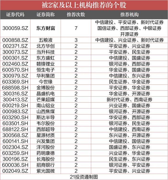 券商金股曝光:东方财富再获多家券商看好