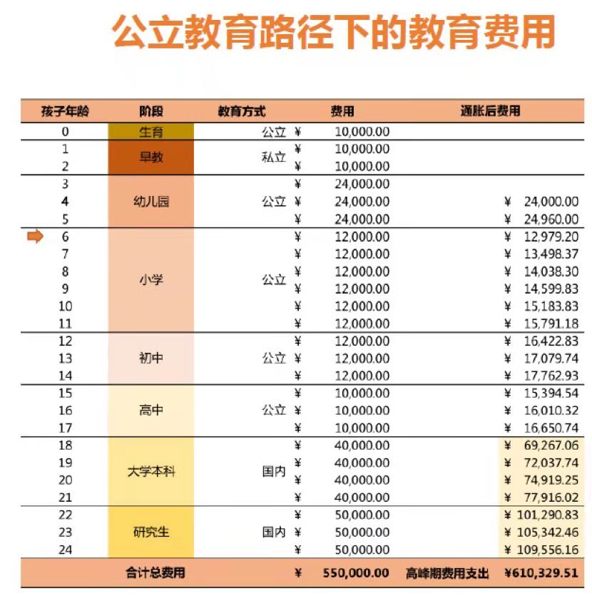但是看菜吃饭也是要做规划的,因为教育金是一个刚性支出,到了孩子上学的时间点,就必须要用。