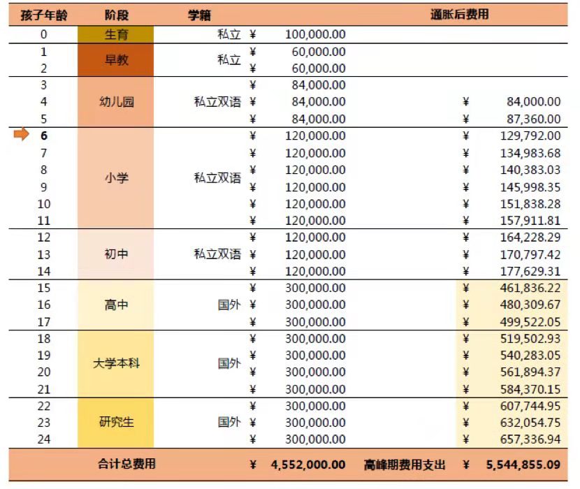总学费455万,通胀后的高峰期费用555万,我想对于大部分中产家庭也不是一下子能拿出来的数。规划的必要性更加显现。
