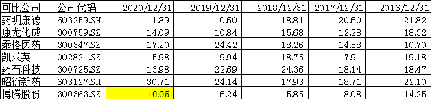 在可比公司中,博腾股份的净资产回报率ROE不算太高,2020年平均加权ROE只有10.05%,2018年定增募集14.6亿元,大幅扩张产能,由于产能释放周期,一定程度上摊薄了净资产收益率。总体来讲,博腾股份的净资产收益率仍然有待提升。