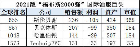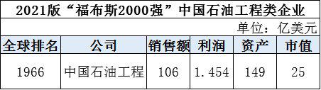 油服装备工程类企业,中国石油工程以全球排名第1966名上榜。