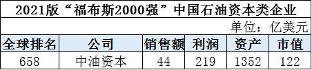 资本类企业,中油资本以122亿美元的市值,1352亿美元的资产,位居全球排名第658位。