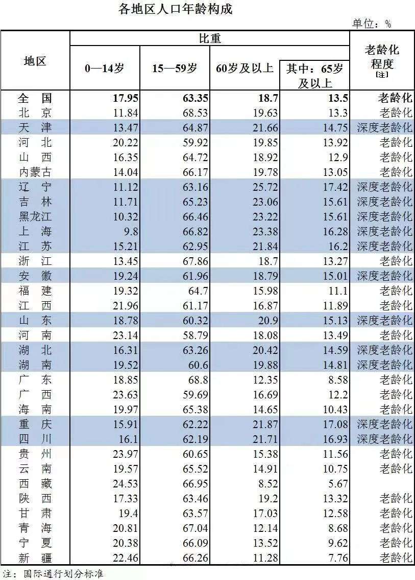 而天津、上海、江苏等12个省市,这一占比已经超过14%,进入深度老龄化阶段。