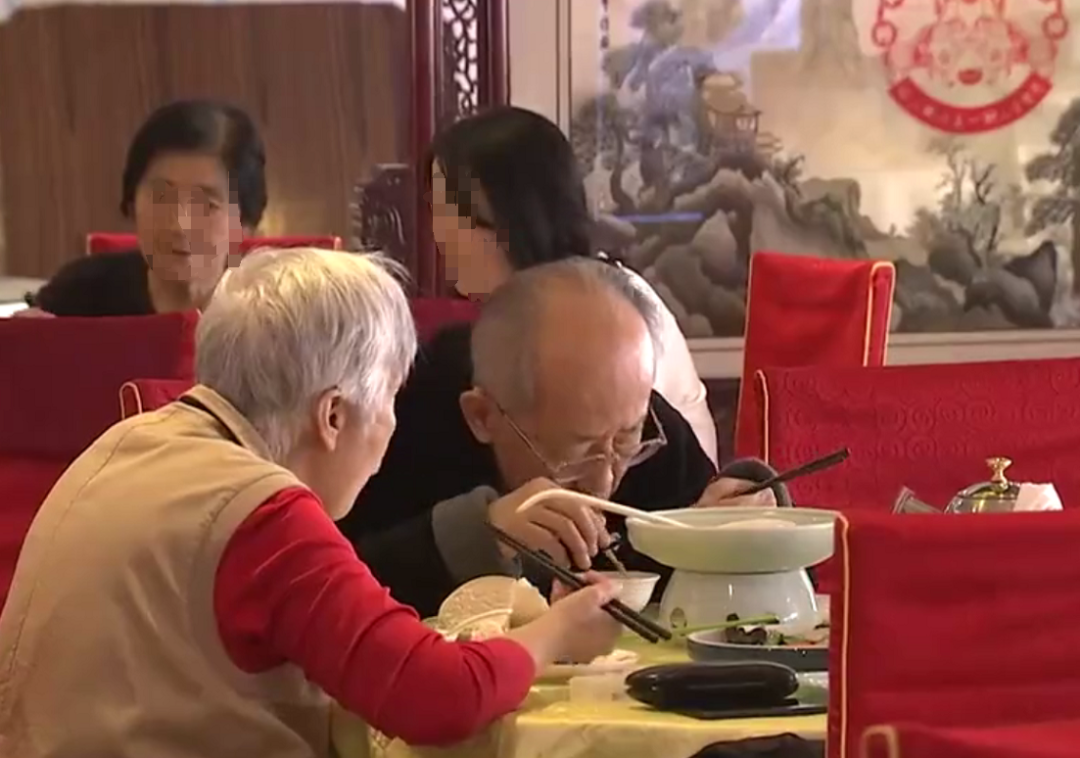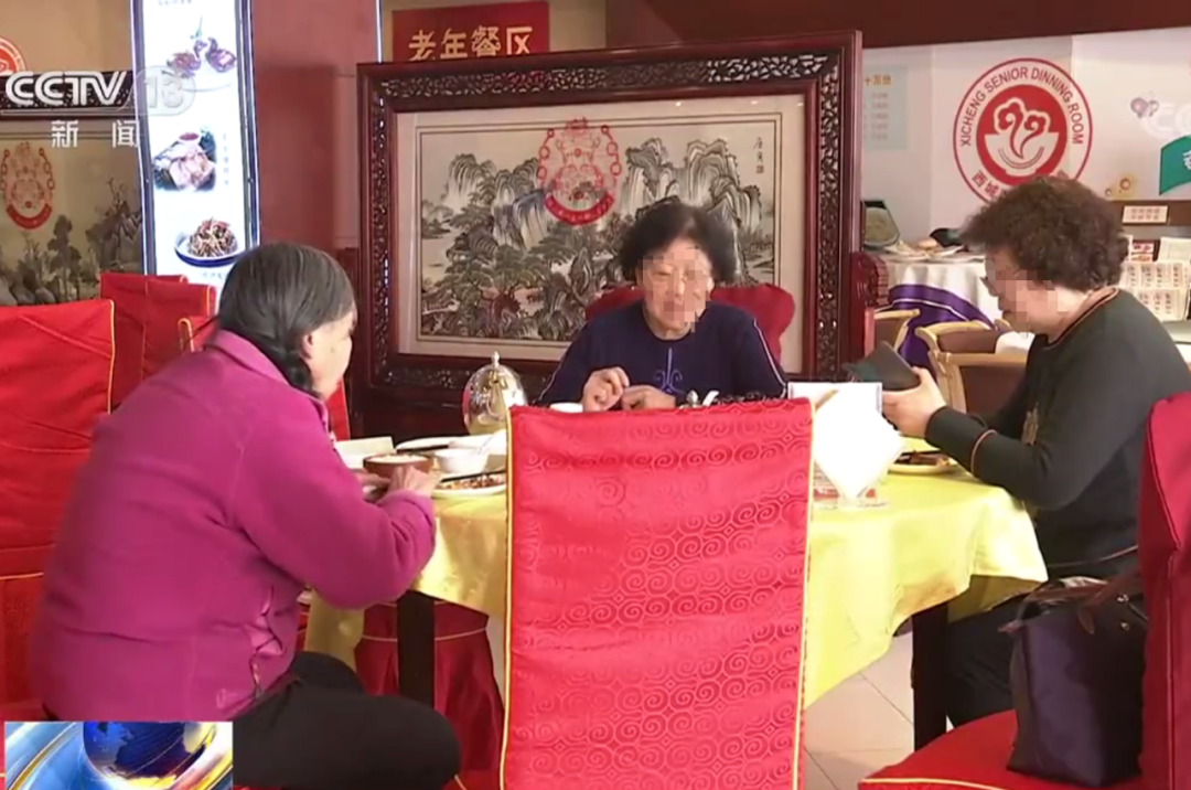 △华天饮食集团旗下的同和居设有老年餐区(央视新闻截图)