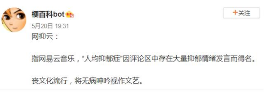 但另一面是,多方变现后让平台大众化,渐渐破坏了原有音乐社区的和谐氛围。自2018年网易云音乐相继推出look直播、K歌等功能后平台受众开始变广,但市场上却渐渐火起了“网抑云”的梗,评论区常出现一些抑郁的矫情文学,其中一些被怀疑是编造的,让用户感到不适。
