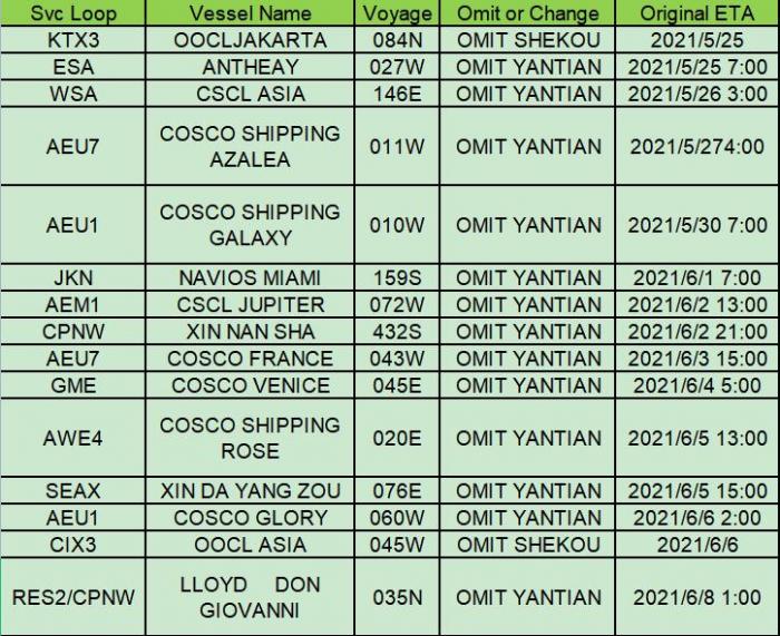 此外,赫伯罗特也将暂时将远东-北欧环线FE2/3盐田港的停靠改为南沙集装箱码头。