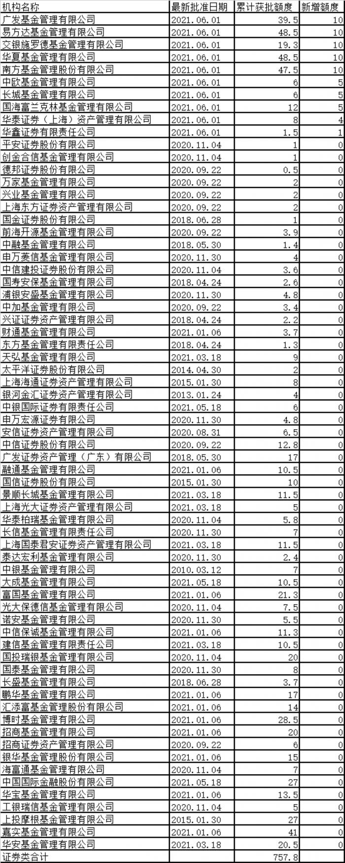 本轮发放后,基金QDII投资额度累计达757.8亿美元。