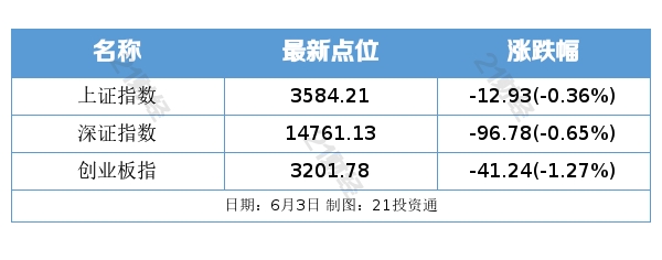 6月3日,沪指冲高回落,创业板指疲软跌1.27%。上海本地股逆市上演涨停潮,券商、医美概念、华为鸿蒙概念等题材走弱。