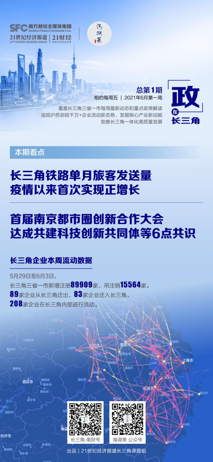 5月29日至6月3日,长三角三省一市新增注册89909家,新增吊注销15564家,其中上市公司均为0家。89家企业从长三角迁出,83家企业迁入长三角,208家企业在长三角内部出现流动情况。