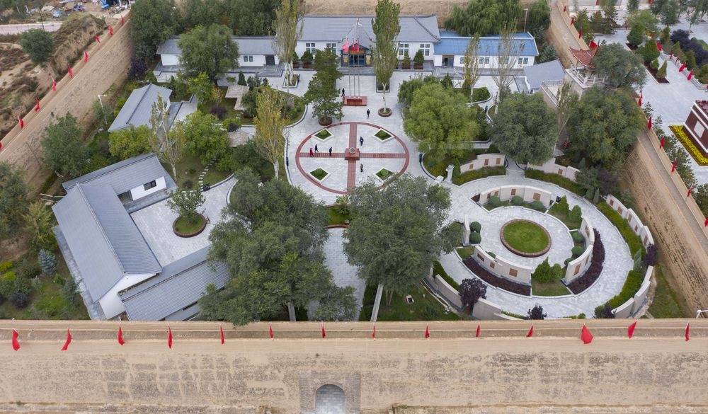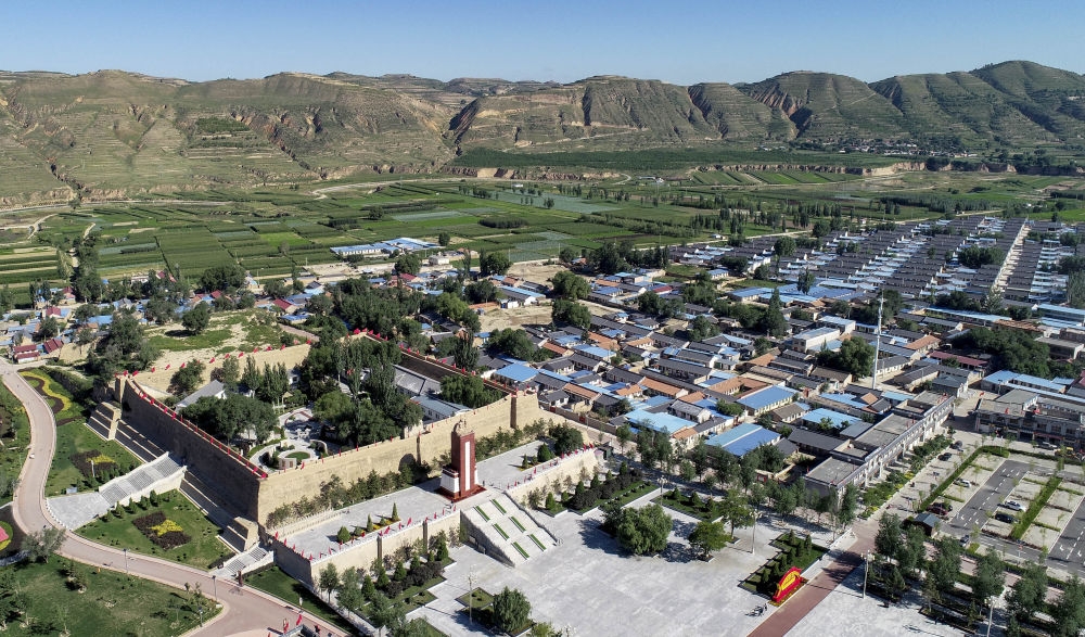 △俯瞰西吉县将台堡红军长征会师纪念园(2019年10月4日摄)。新华社记者杨植森摄