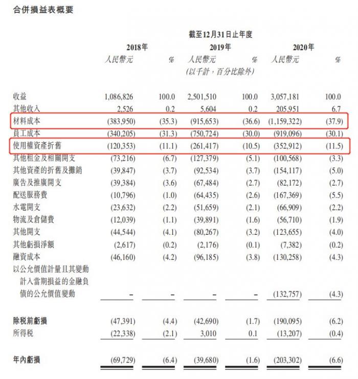 根据奈雪招股书,2018-2020年原料成本占比分别为35.3%、36.6%、37.9%。租金成本(使用权资产折旧)2020年占比约11.5%。另外,员工成本连续三年超过30%。据了解,一家奈雪门店需要茶饮师、训练员、副经理、副店长、店长等平均21位员工。