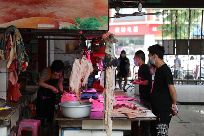“今天的蔬菜价格没有涨,和之前一样,菜心7元一斤,生菜4.5元一斤。一般猪肉价格也维持在十几元、二十几元之间,相比之前并没有涨价。市民也没有哄抢,大家都很有秩序。”该市场的管理者表示。
