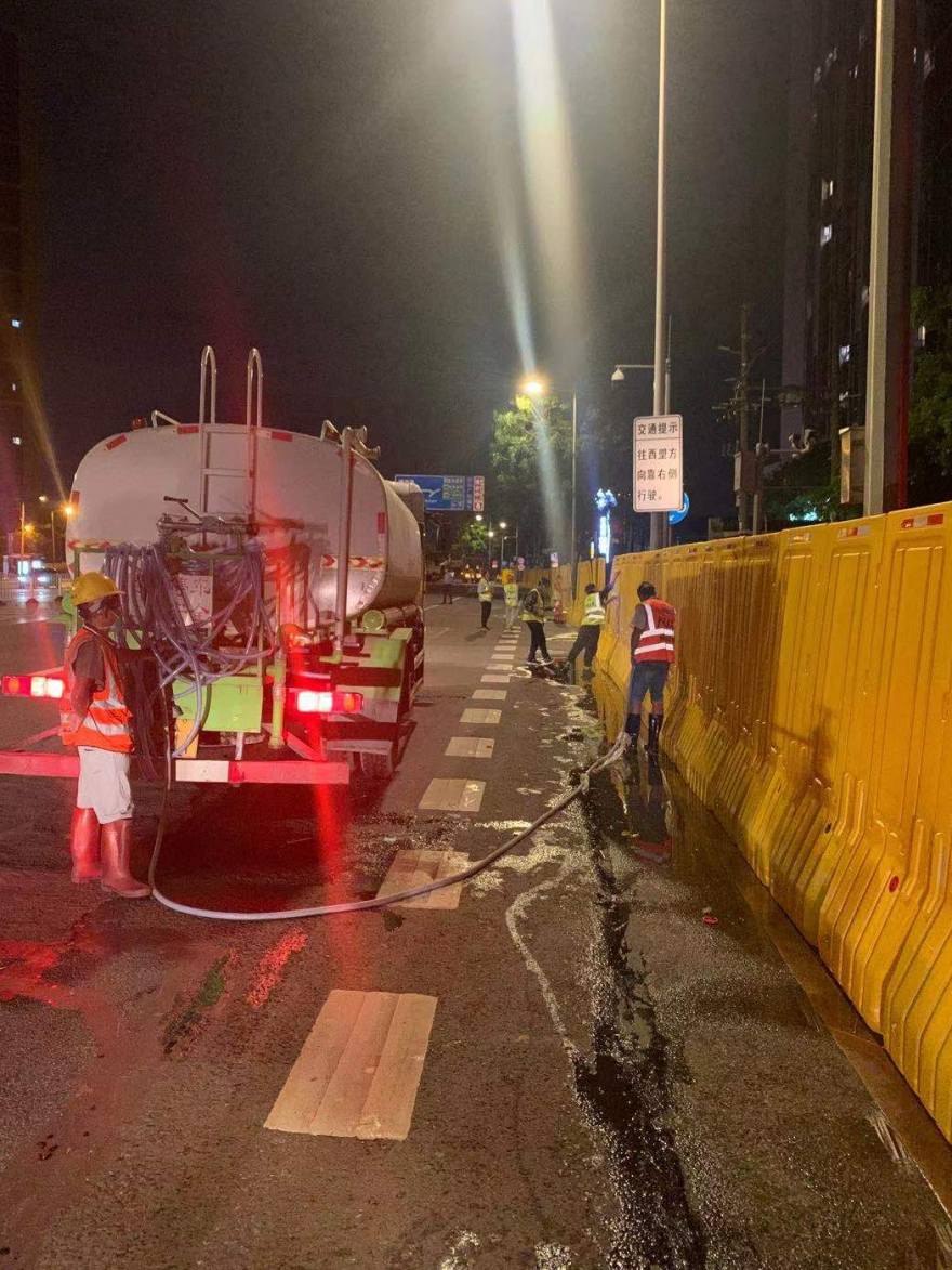 市设计院和产研院组织设计团队连夜统计围蔽工作量,彻夜不眠完成围蔽方案设计;市政集团共派出19名管理人员、58名工人参与石围塘街道围蔽施工,通宵完成围蔽1100米;总承包集团派出64人参与芳村街道围蔽施工,完成围蔽800米;工程事业部共派出30名管理人员和41名建筑工人参与花地街辖区内9个社区的围蔽施工,采取划片分区的施工模式,持续作战十余小时。四建公司于凌晨完成995米围蔽任务后28人转战冲口街完成1000米围蔽任务。盾建公司通宵施工,负责荔湾区东沙街道东塱联社、中南街道花卉大街两个区域共计5100米的围蔽任务。