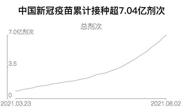 国内疫苗接种速度再现“中国速度”,据国家卫健委通报,从6亿剂次到7亿剂次仅用5天,截至2021年6月2日,31个省(自治区、直辖市)和新疆生产建设兵团累计报告接种新冠疫苗70482.6万剂次。