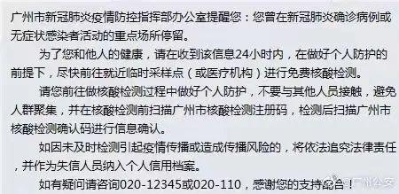 据广州市新冠肺炎疫情防控指挥部办公室回应:如群众本人的健康码为“绿码”,且收到短信前3天内已做好核酸检测,则不需要再检测;如群众近3天未做过核酸检测的,请在收到短信的24小时内尽快前往就近的采样点进行核酸检测。