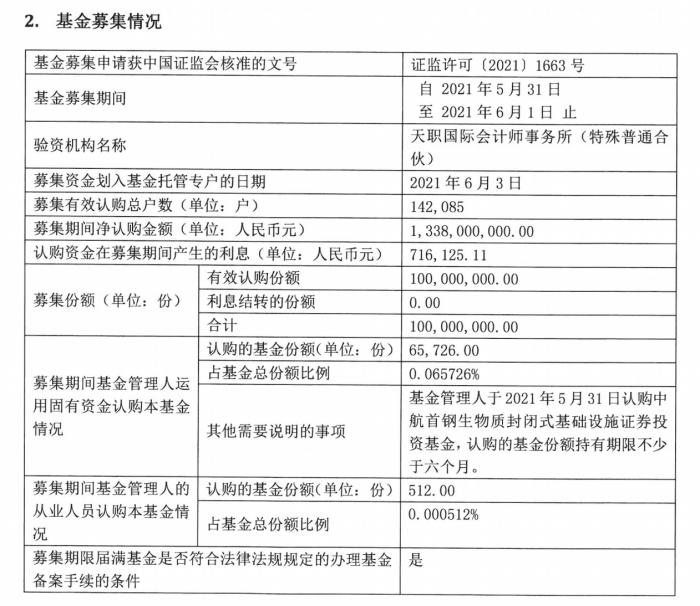 其中,“中航首钢生物质封闭式基础设施证券投资基金”(简称“首钢绿能”)刷新了公募基金历史最低配售比例,这也是北京市首笔公募REITs项目。
