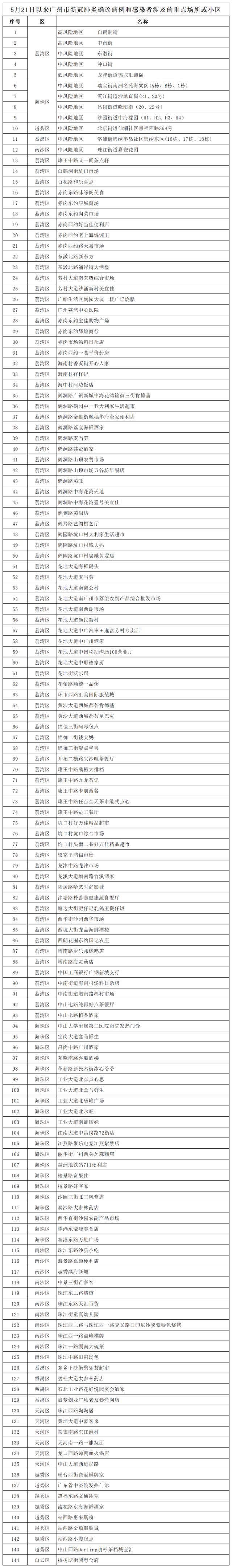 5月21日至6月6日24时,广州市本轮疫情累计报告98例境内感染者(84例确诊、14例无症状)。目前,所有感染者均在广州市第八人民医院隔离治疗。上述感染者涉及的场所或小区,均由疾控部门进行了严格的终末消毒(涉及的有关场所或小区名单附后)。