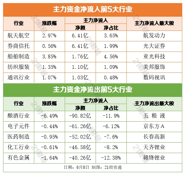 据21投资通(微信号ID:touzit21)智能监测,6月8日,北向资金净买入3.01亿元。其中,沪股通净卖出3.97亿元,深股通净买入6.98亿元。