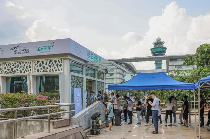 6月9日,为方便旅客解决因核酸检测证明不符而误机的问题,金域医学联合白云机场在一号航站楼12门对面增设金域医学现场核酸检测点,将集装箱“猎鹰号”移动检测车驶入白云机场,面向有出行需求的旅客提供24小时全天候新冠病毒检测服务,并承诺采样后4~8小时出具核酸检测报告。