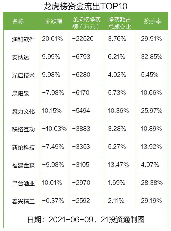 而龙虎榜中资金净流出最多的是“最强鸿蒙概念股”润和软件(300339.SZ),被净卖出为2.25亿元,占总成交金额的3.76%。润和软件收盘上涨20.01%,换手率为29.91%。其中北向资金和机构净卖出1.88亿元。
