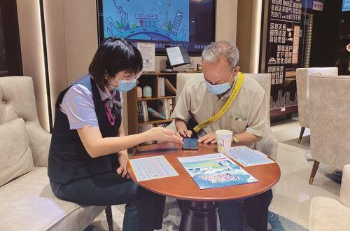 农行工作人员指导客户用手机线上认购该债券