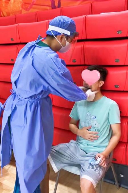 采样后嘴巴合不上了,男同学求助医疗队摆脱“窘境”