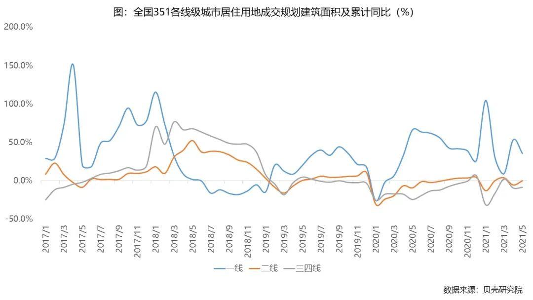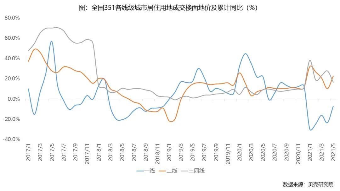 2.分城市线级看,5月进入集中供地高峰期,一线城市成交楼面地价降幅显著收窄,二线城市成交楼面地价保持增长。