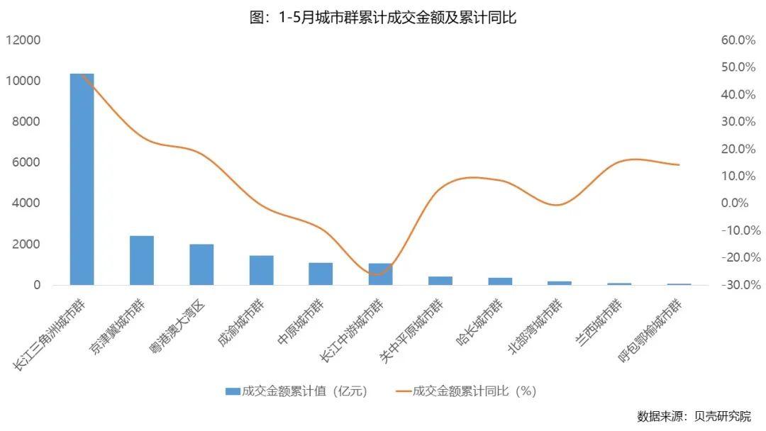 ■ 长三角、京津冀、大湾区列城市群前三位,长三角受到集中供应因素影响位列第一。