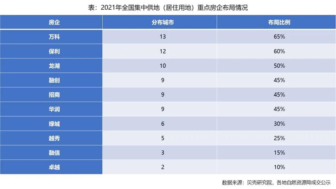 头部房企全国布局,中游房企专注区域。万科、保利、龙湖在20城的布局中全面参与,布局范围更广,取得地块城市超过10座以上;而融信、卓越以重点城市为主。