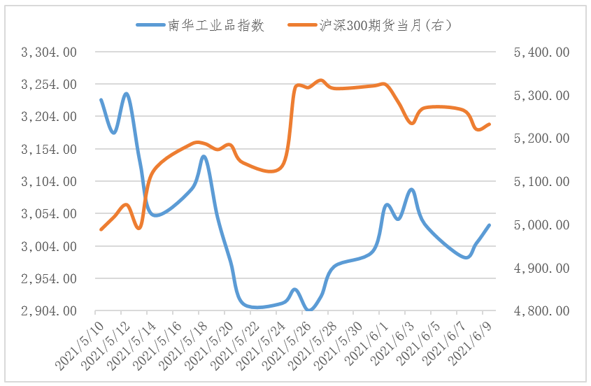 根据我们的分析,此次期指突破上行主要得益于市场风险偏好的改善。此前,期指一直在区间内震荡整理,从宏观层面看,有两个比较大的因素发生了改变。第一个因素是国内大宗商品价格得到了较好的控制。从南华工业品指数的走势可以看到,大宗商品价格从从5月13号开始从高点回落,一直下跌到5月24号触及近期底部附近。随着大宗商品价格的下跌,期指逐步回升,两者的走势是相反的。大宗商品价格上涨导致的上游原材料压力,让中下游企业的利润空间受到压制。这是市场之前一直较为担忧的一个点,因此,大宗商品价格回落,而期指回暖的走法是符合逻辑的。但是,我们看到在5月25日这一天,大宗商品价格和期指的走势却是同向的,这和此前的逻辑是相悖的。