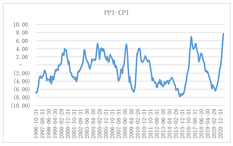 6月9号上午,国家统计局公布了最新的价格指数数据。5月PPI同比增速达到了9%,远超市场预期,而CPI同比增速仅1.3%。PPI和CPI的剪刀差进一步拉大,达到了7.7%,是有记录以来的历史最高值。PPI和CPI之差可以反映上下游企业的利润关系,当差值扩大时,通常意味着下游企业的成本压力加大,利润空间被挤压。同时,5月核心CPI也进一步回升,环比上涨0.2%,录得0.9%。核心CPI和PPI的同步回升,加上PPI和CPI的差值扩大,都在说明国内的通胀隐忧仍在。市场很可能会因此担忧流动性状况的进一步收紧,从而给期指上涨带来负面的压力。