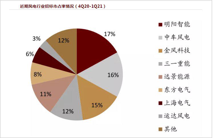 天风证券在报告中指出,2021年中国风电新增规模将保持在3000万千瓦左右。根据此前业内的统计,2020年国内排名前十的整机商出货量就已超过5000万千瓦,而金风科技、明阳智能、远景能源等头部企业还在扩产。