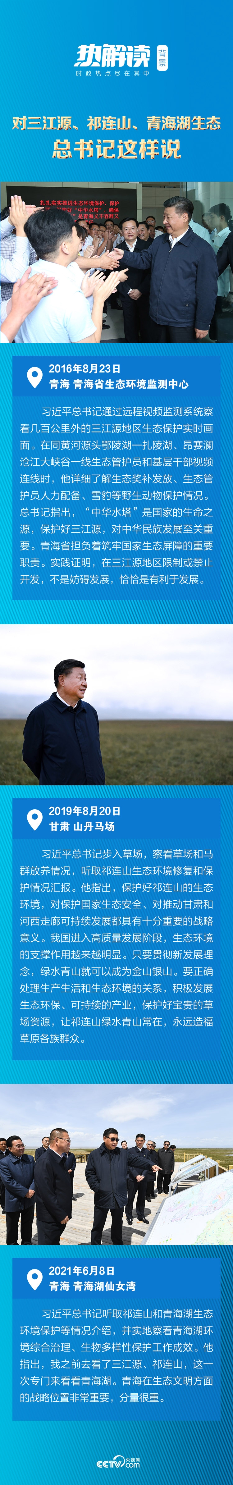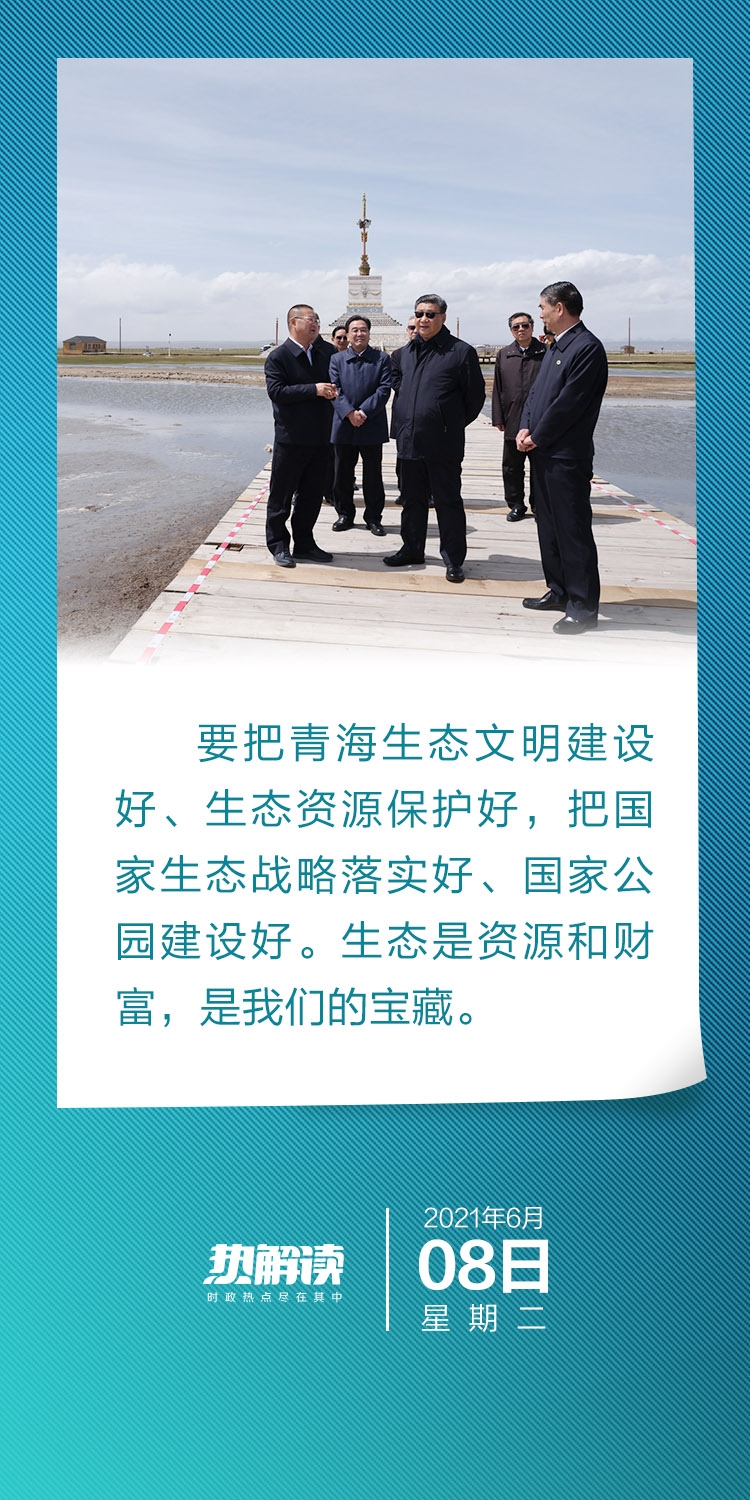 驻足于青海湖沿湖修建的木质栈道上,总书记指出,我之前去看了三江源、祁连山,这一次专门来看看青海湖,并深情嘱托:“要把青海生态文明建设好、生态资源保护好,把国家生态战略落实好、国家公园建设好。”