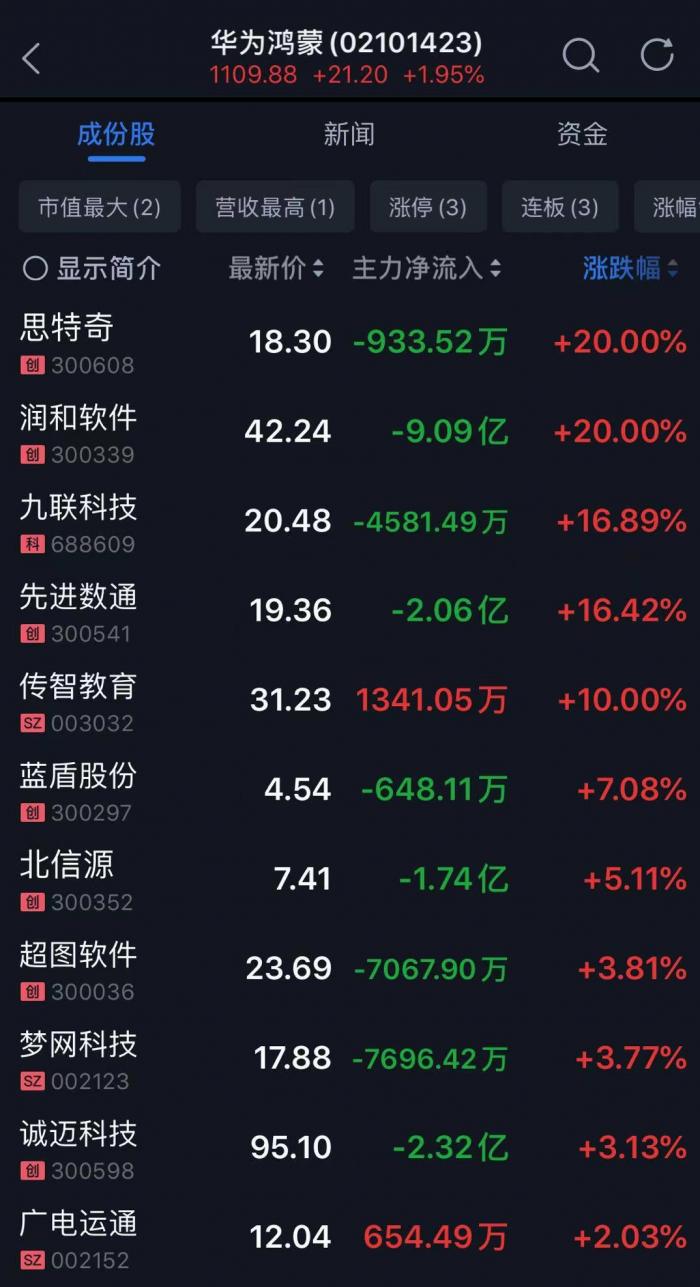 华创证券认为,鸿蒙主题不会短,后续或以涨休交替形式进行,更建议关注应用端。中原证券则指出,近期借助鸿蒙概念,软件行业渐渐获得资金的关注,板块整体出现回暖迹象,但同时警惕头部高估值个股的风险释放。