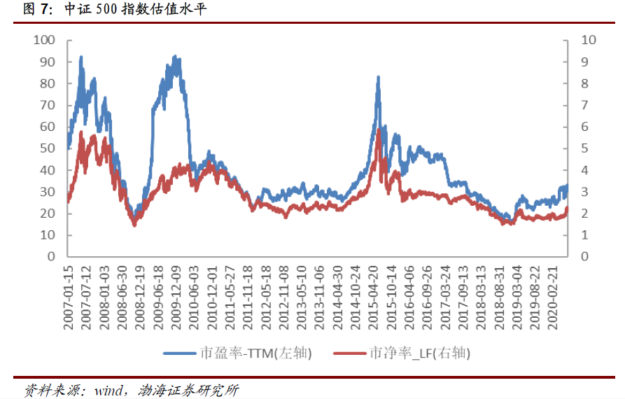 自2007年中证500指数发布以来,其平均市盈率大概为40倍,中位数为33.2倍。
