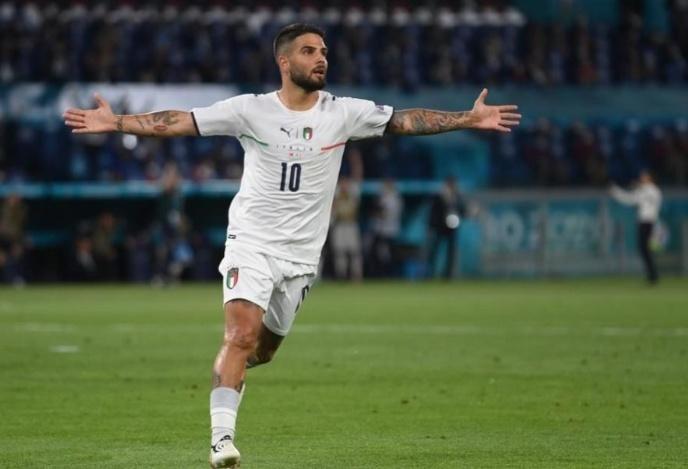 意大利队因西涅庆祝进球。(图片来自欧锦赛官网)