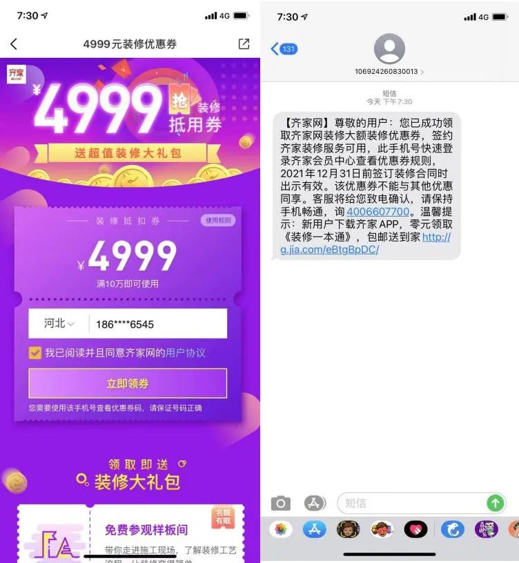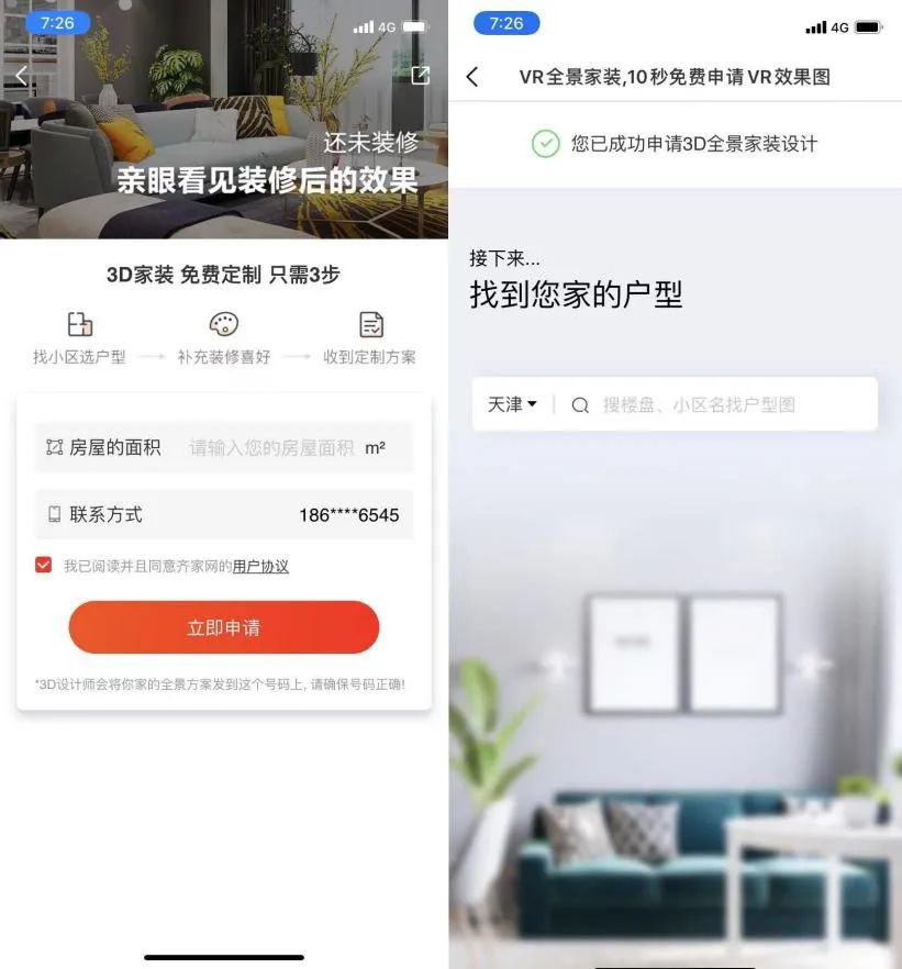 这一逻辑从齐家网的APP架构上就可以看出来。齐家网APP上充斥着“免费”信息吸引用户留下信息,甚至点进购买链接也不能直接下单而是留下信息,最终齐家网介绍三家装修公司由它们去竞价,最终客户决定跟谁签约。
