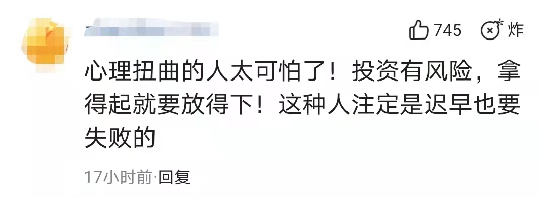 不清楚这个疯魔的人究竟是怎样的投资失利,能让他失控到如此丧心病狂?
