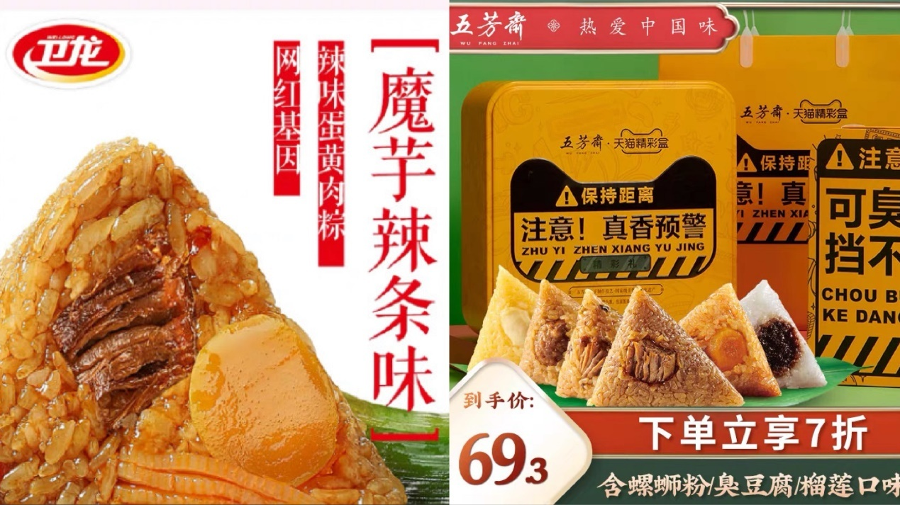 在这场没有硝烟的“粽子争夺战”中,新老品牌各显神通,将粽子做的千姿百态、口味各异。螺蛳粉粽子、鲍鱼粽子、榴莲粽子……年轻人爱好猎奇,商家也就剑走偏锋,有网友就评论说:万物皆可包的粽子,味道好像是最不重要的。