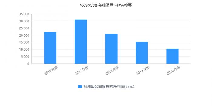 而现实是,莱绅通灵2020年实现了12.27的营业收入,同比下降6.95%;实现归母净利润1.04亿元,同比下降31.56%,值得注意的是,莱绅通灵的业绩自2017年以来一直处于下降趋势。