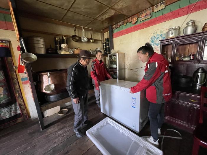 此时,这台刚刚走下分拣线的冰柜,与德庆多吉位于林芝米林县西噶门巴村的住所,相距约500公里。这台冰柜将从拉萨京东电商园区出发,沿2019年刚刚贯通的林拉公路,翻越海拔超4000米的米拉山,抵达林芝市米林县京东家电专卖店,再由专卖店店员配送到户。