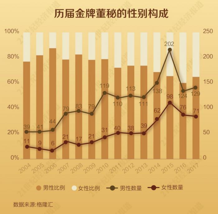 据统计显示,董秘职群中薪资最高的董秘为女性,但男性董秘的薪酬仍远超女性董秘,虽然女性董秘数量占比近年来呈上升趋势,但是男性比例总体维持在65%以上。在此次21世纪董秘系列活动中,特别为女性董秘设立了优秀特色案例——“白玉兰人物”,旨在遴选出董秘职群中的卓越女性董秘,肯定女性董秘在业内的卓越成就,鼓励女性董秘在董秘职群中更加发光发热。