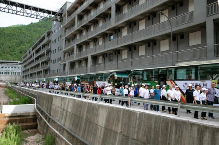 步入吴家沟制曲车间,室外温度超过35度,制曲工人已经忙碌起来。各界嘉宾与女工一同为曲块拉边,送入发酵仓,体验传统酿造技艺。而后,酒曲还将历经三次翻曲、拆曲、储存发酵等长达1年光阴,最终将参与到2022年的酿酒工序。