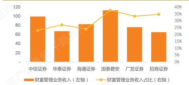 图 2019年财富管理业务的收入规模及其占比(单位:亿元)